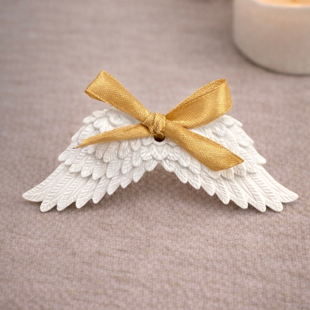 Peça decorativa em gesso perfumado, moldada em forma de asas, símbolo de leveza, proteção e serenidade. Ideal para perfumar suavemente pequenos espaços, enquanto acrescenta um detalhe delicado e harmonioso à decoração.