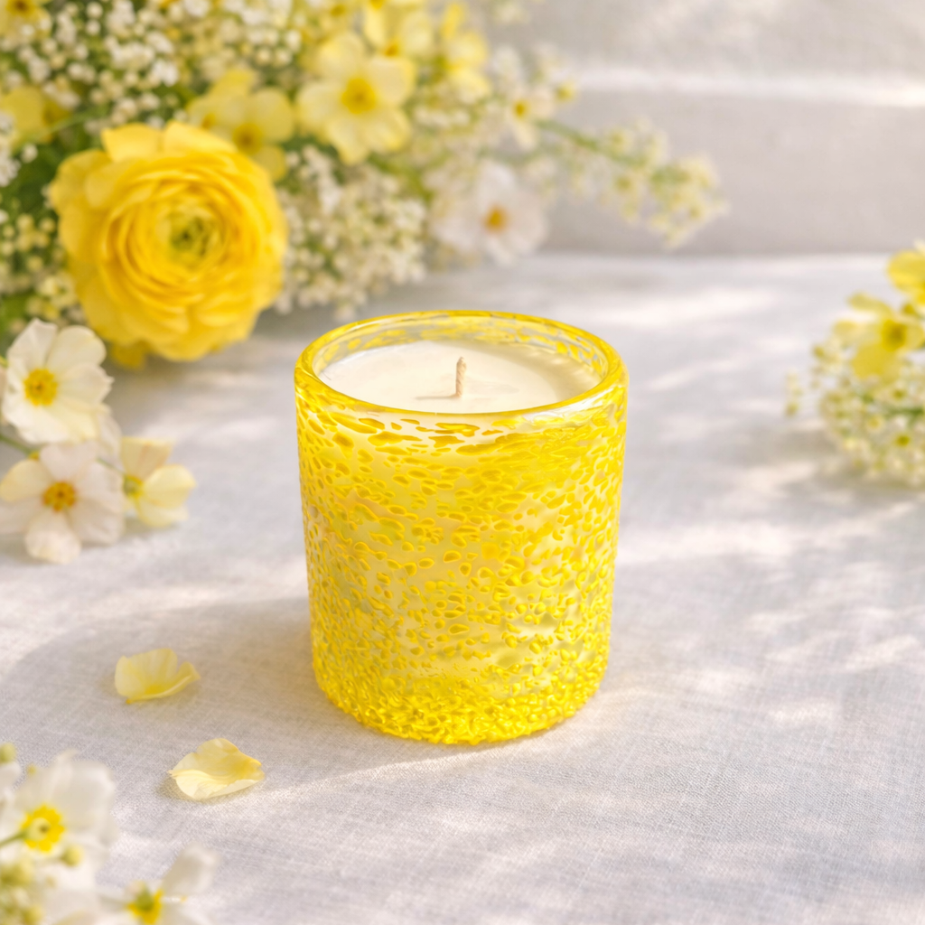 O seu copo em tom amarelo luminoso transmite calor, luz e boa disposição, sendo o toque perfeito para dar vida a qualquer ambiente. Mais do que uma vela, é uma experiência sensorial que desperta os sentidos e transforma o espaço.